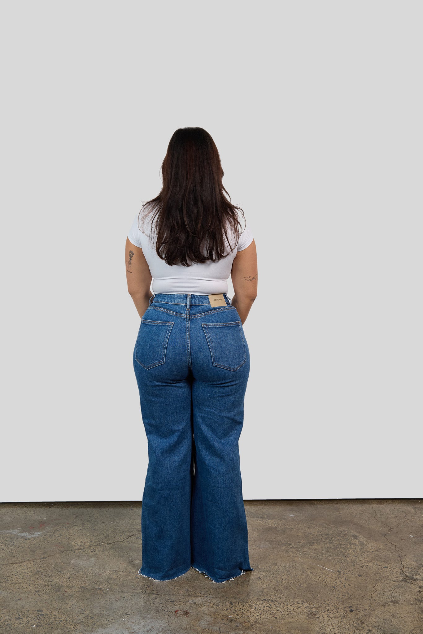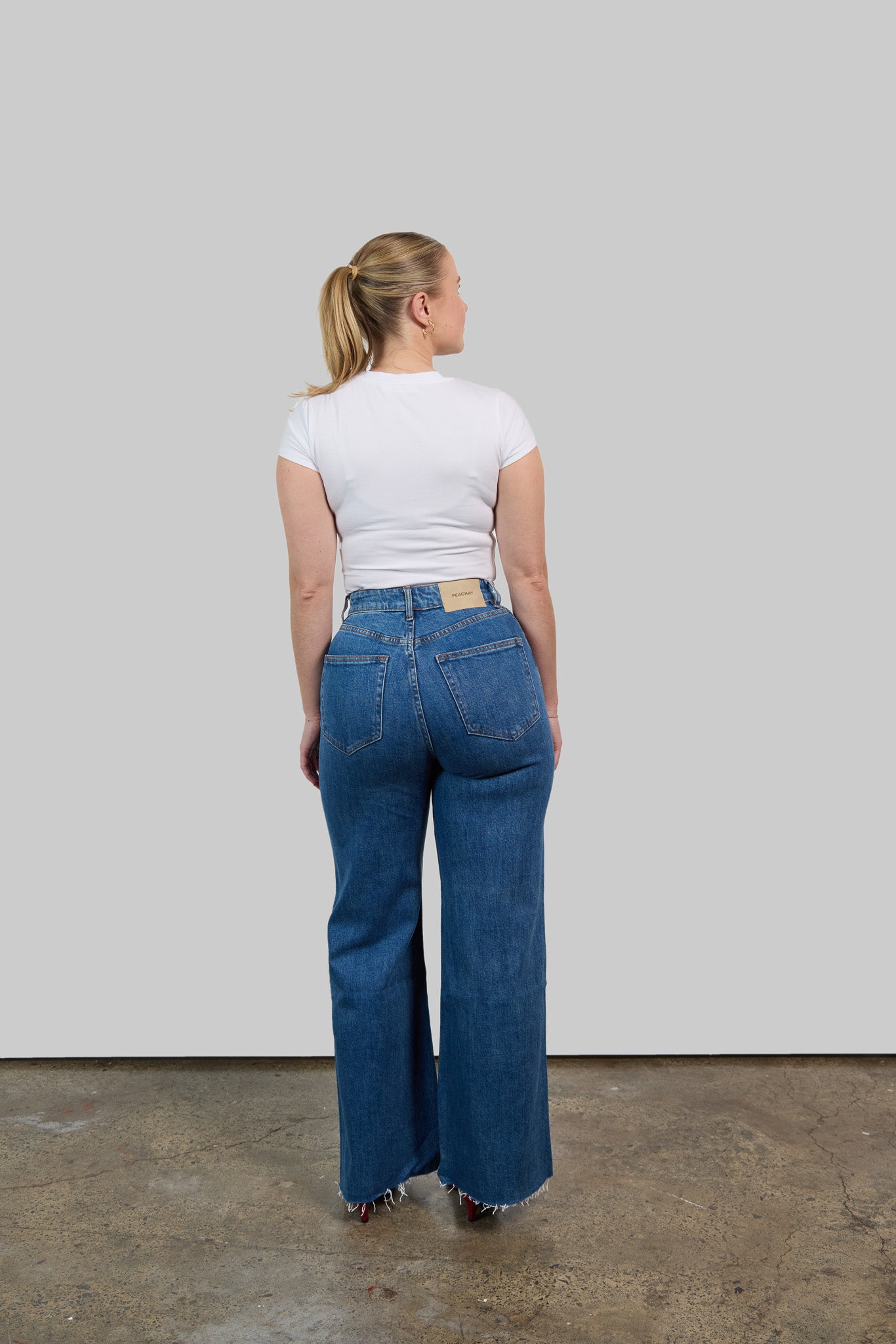 - Custom Peachay silver button on the waistband for a refined finish